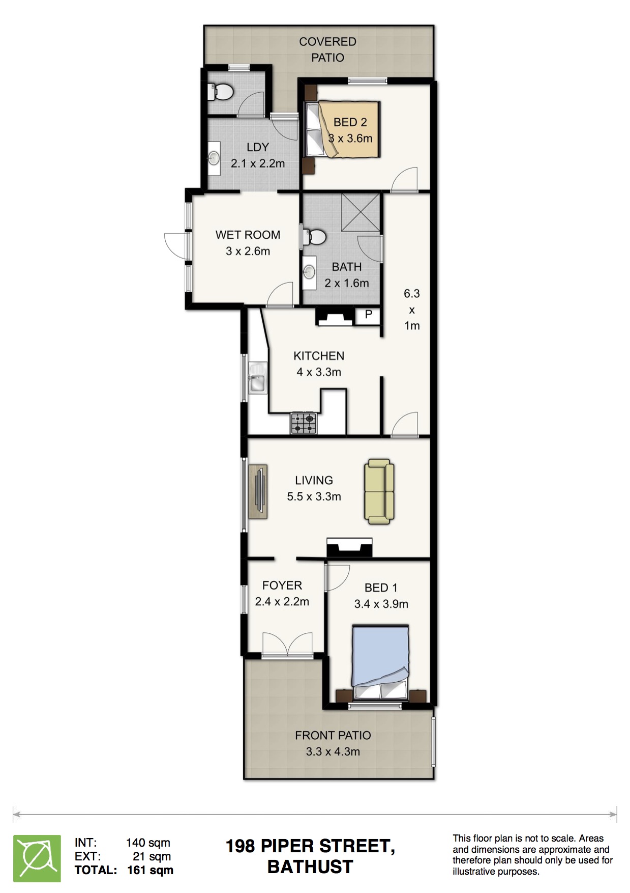 | 2 Beds | 1 Bath | Approx 356 Square metres | 1 car space |