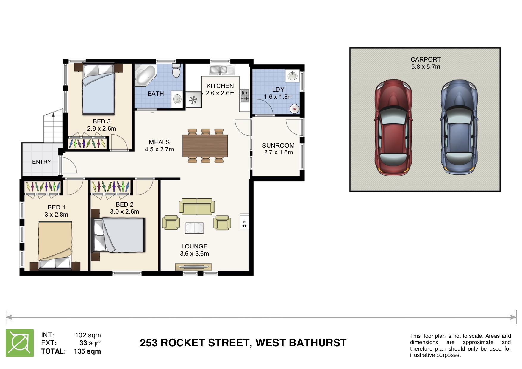 | 3 Beds | 1 Bath | Approx 892 Square metres | 2 car spaces |